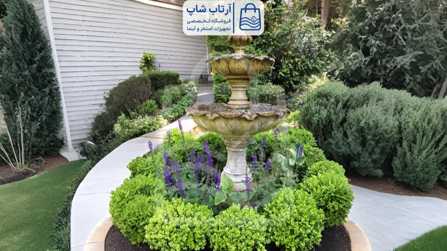 - اگر فضای باز بزرگ دارید → آبنمای سنگی کلاسیک