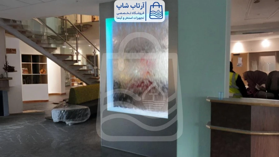 آبنما، آبنمای شیشهای، طراحی آبنما، نورپردازی آبنما، انتخاب آبنما، فضای داخلی، فضای خارجی