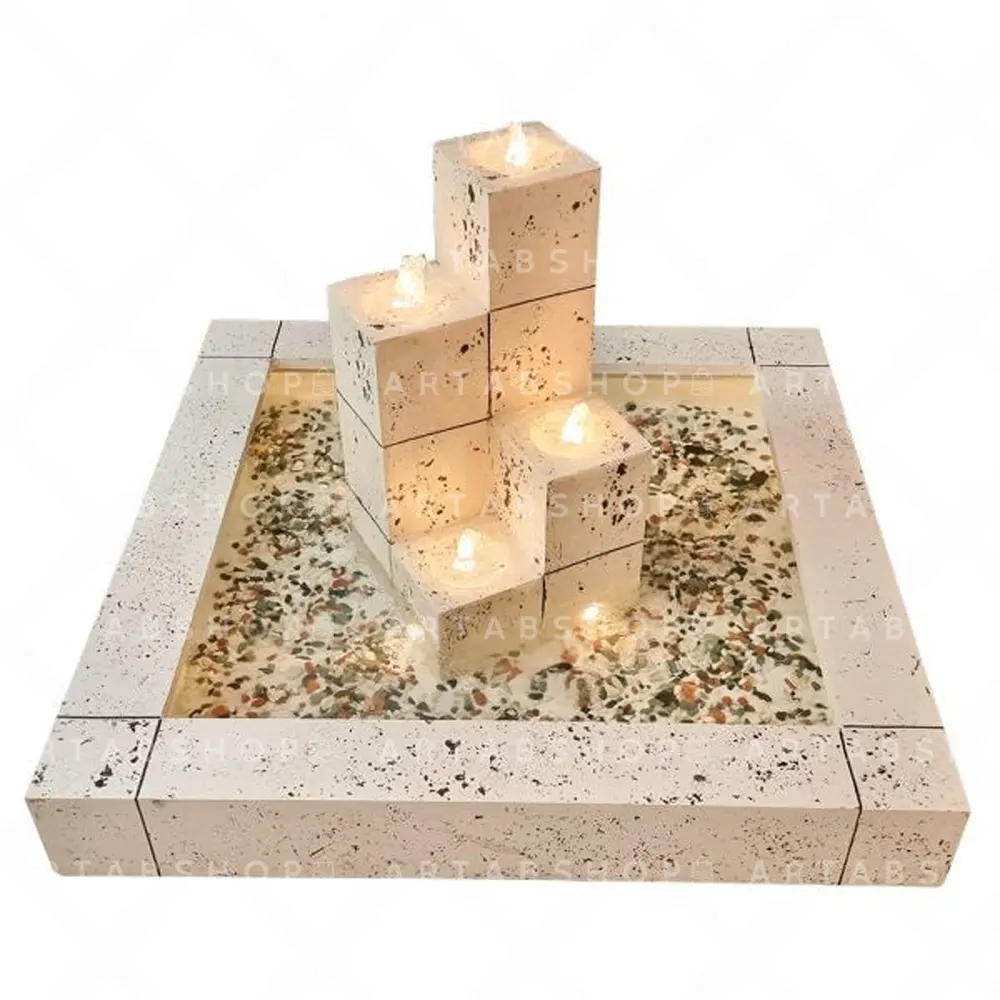 در داخل بدنه آبنما، پمپ مگنتی کمصدا و کممصرف تعبیه شده که گردش مداوم و نرم آب را تضمین میکند. این پمپ از کیفیت بالایی برخوردار است و عملکردی کاملاً بیصدا دارد. علاوه بر آن، خریداران میتوانند چراغ LED سفارشی را نیز سفارش دهند تا در شب جلوهای درخشان و چشمگیر به محیط ببخشد. انعکاس نور روی سطح آب، حس آرامش و لطافت فضا را چندین برابر میکند.