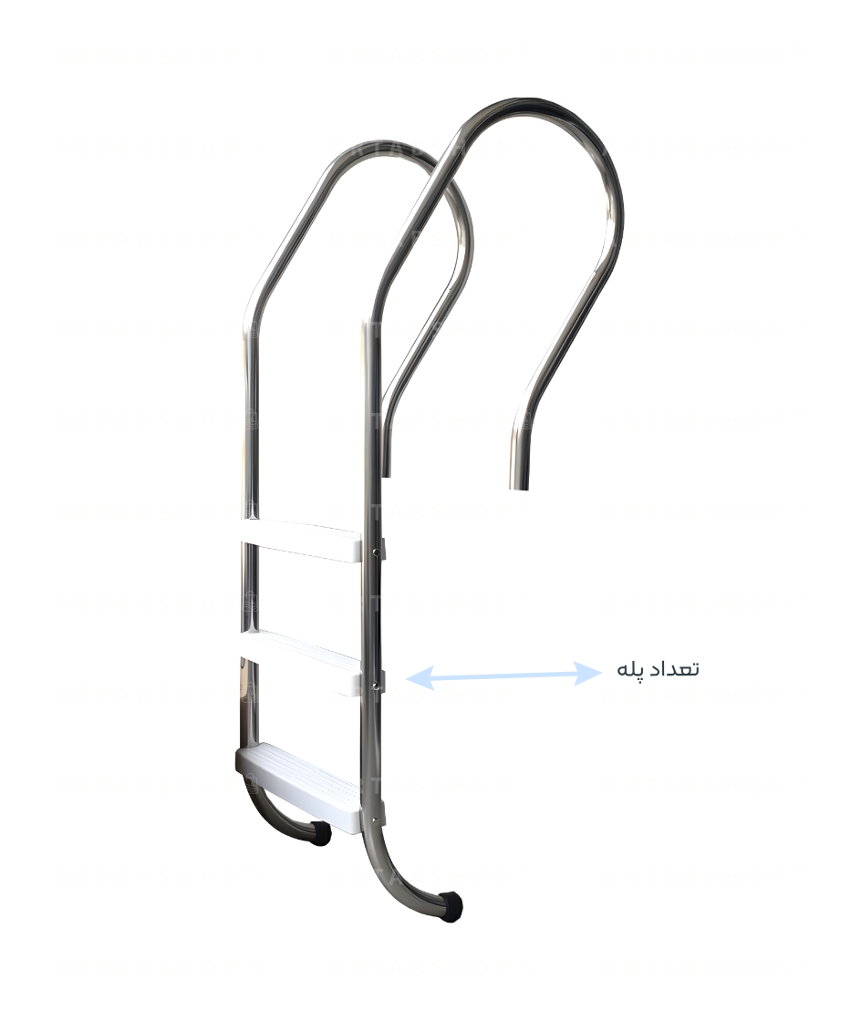 شما میتوانید بر اساس عمق استخر خود، تعداد مناسب پله را انتخاب نمایید. برای استخرهایی با عمق بالای ۱۴۰ سانتیمتر، توصیه میشود حداقل سه پله از نردبان داخل آب قرار گیرد تا راحتی و ایمنی کاربر تضمین شود.