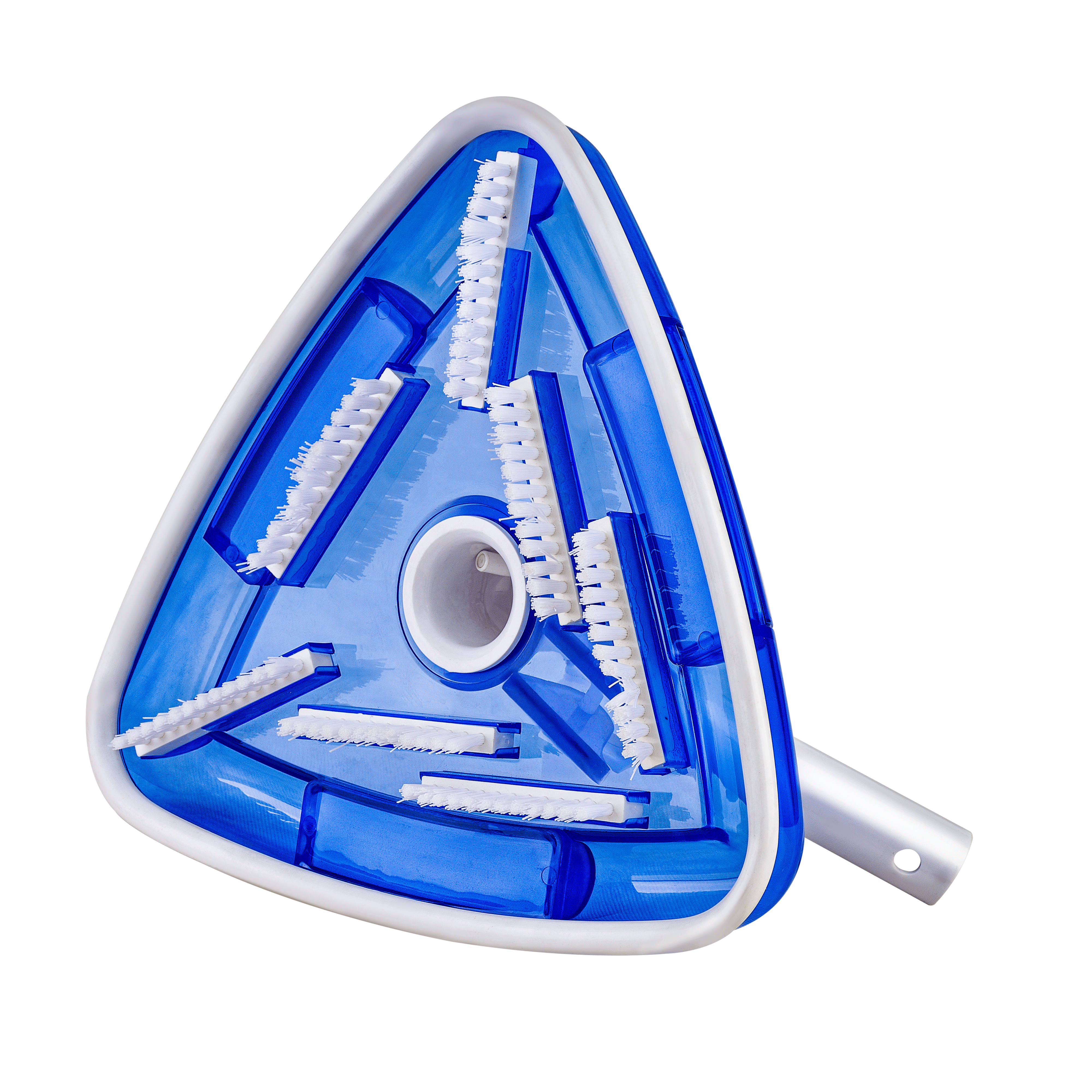 مهمترین ویژگی ظاهری این جارو، طراحی سهگوش و زاویهدار آن است که به کاربر اجازه میدهد بهراحتی به تمام گوشهها و کنارههای استخر دسترسی پیدا کند. در بسیاری از استخرهای خانگی یا تجاری، تجمع جلبک و آلودگی معمولاً در نقاطی رخ میدهد که دسترسی به آنها دشوار است. اما ساختار مثلثی این جارو باعث میشود بتوانید با دقت بالا حتی سختترین زوایا را نیز تمیز کنید این طراحی نه تنها ظاهری زیبا و کاربردی دارد، بلکه باعث حرکت روانتر جارو در زیر آب میشود. انحنای ملایم گوشهها و سطح صاف زیرین، مانع از گیر کردن جارو به کف یا دیواره استخر شده و تجربهای راحت و سریع در نظافت ایجاد میکند.