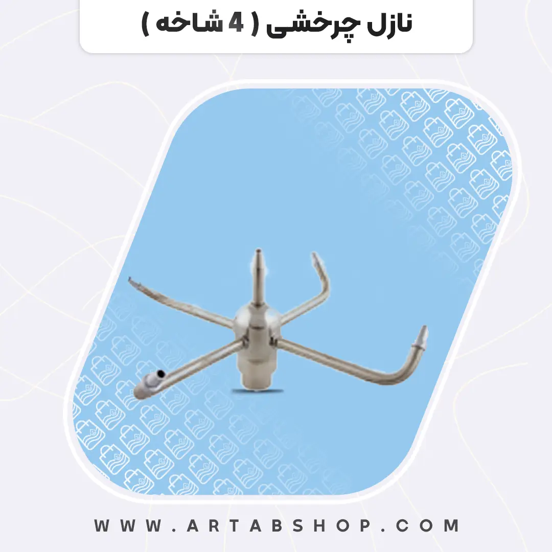 نازل چرخشی (Rotary Nozzle) از جمله نازلهایی است که به کمک فشار آب، به صورت خودکار شروع به چرخش میکند. در مدل ۴ شاخه، چهار خروجی آب روی بدنهی نازل تعبیه شدهاند که هر کدام در زاویهای خاص، آب را به بیرون پرتاب میکنند.