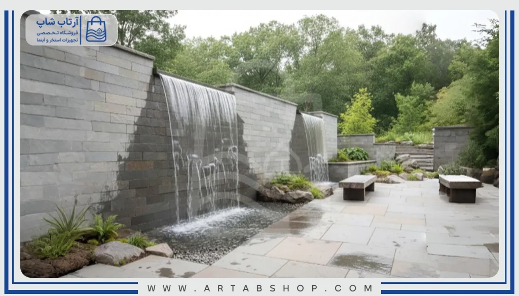 سیستم پمپاژ آب باید بهگونهای انتخاب شود که جریان آب بهطور یکنواخت و آرام به پایین سقوط کند. پمپهای کمصدا بهترین گزینه هستند زیرا صدای اضافی تولید نمیکنند و به ایجاد یک فضای آرام کمک میکنند.